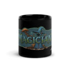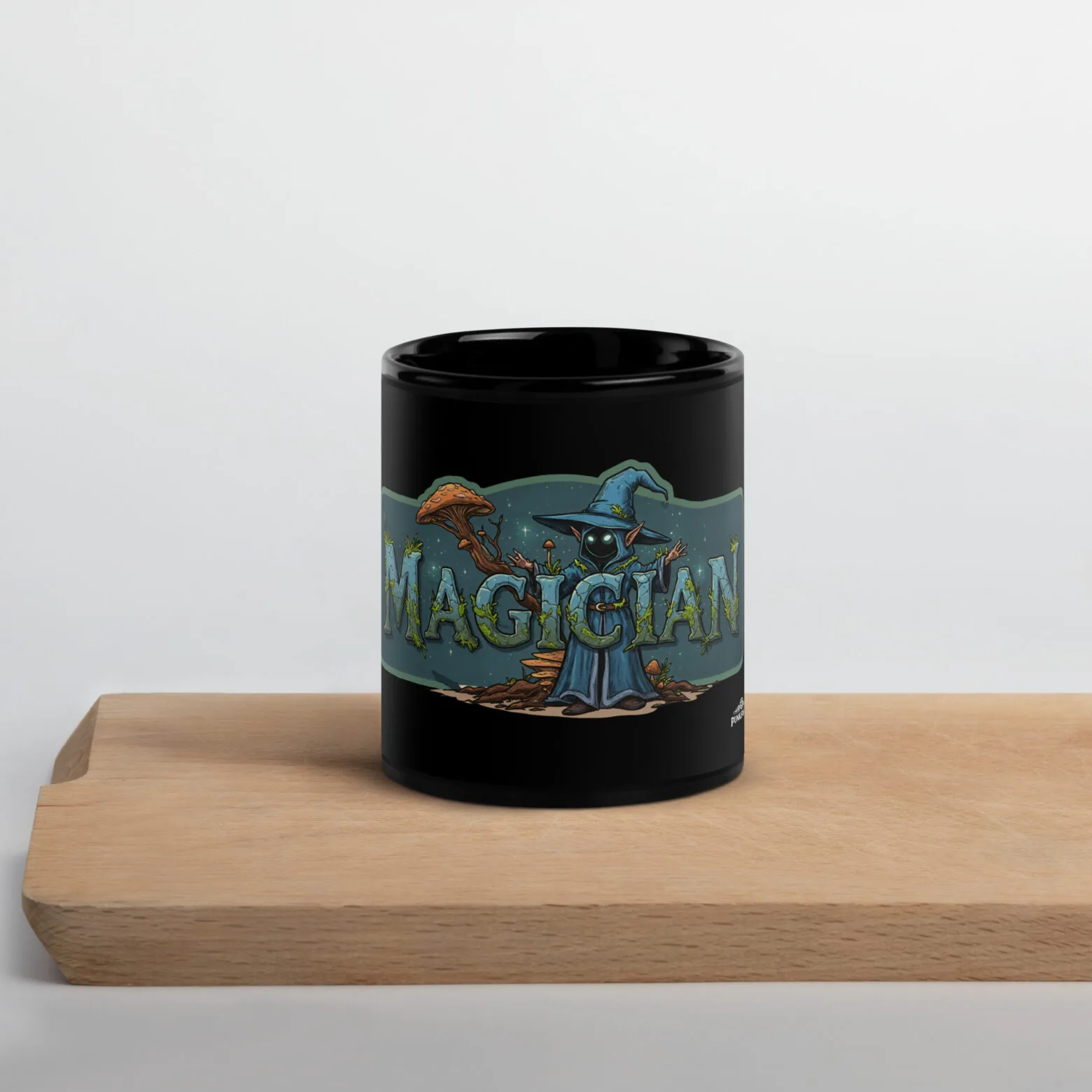 Un indispensable de vos placards, ce mug noir brillant en céramique combine robustesse et élégance pour sublimer votre café du matin ou thé de l’après-midi. Il présente une forme cylindrique dotée d’une finition noire brillante. Le design unique arbore des teintes vertes avec des illustrations raffinées d’un magicien portant un chapeau, entouré de champignons et d’étoiles, avec le mot « MAGician » inscrit au centre en lettres stylisées. Aucun composant mobile ou accessoire n’est présent.