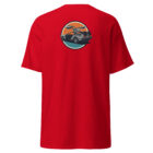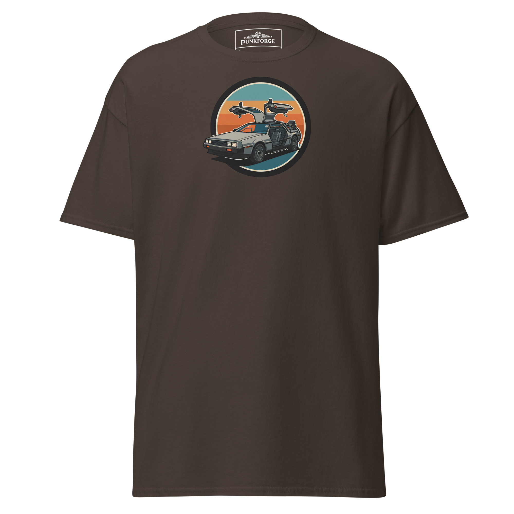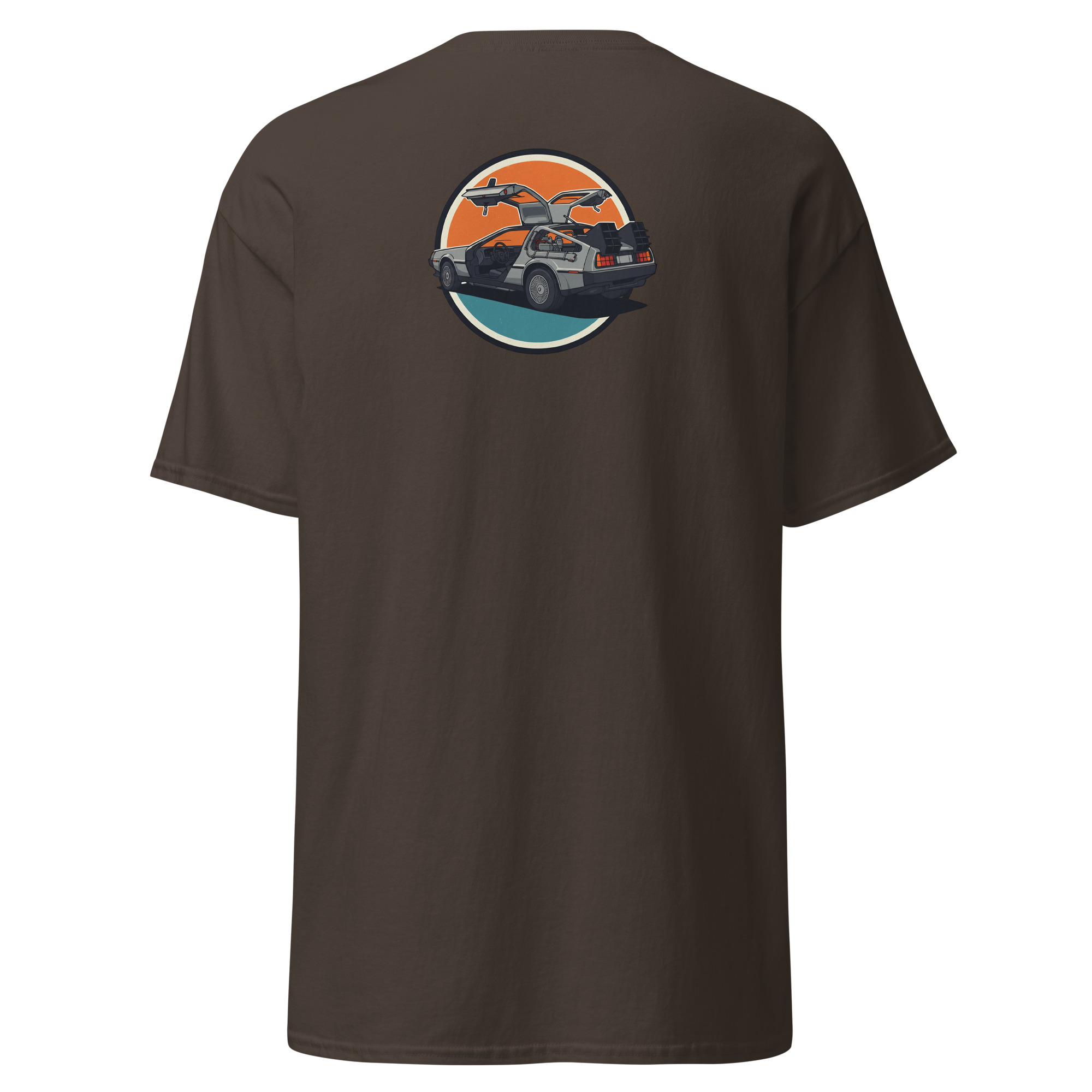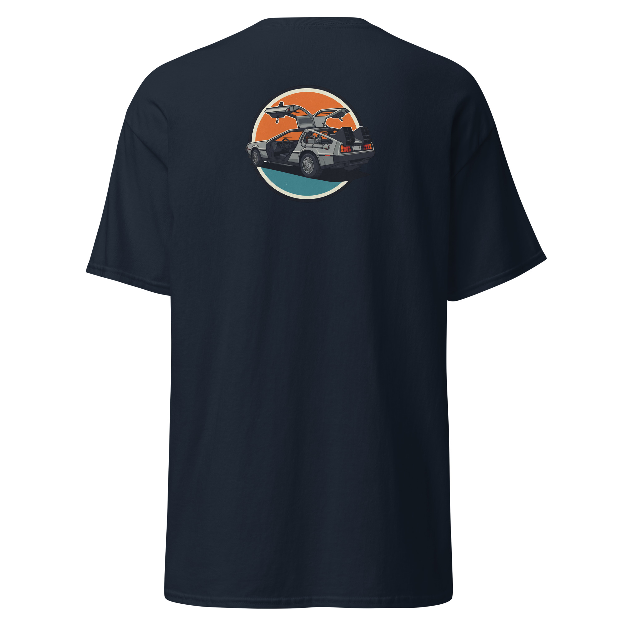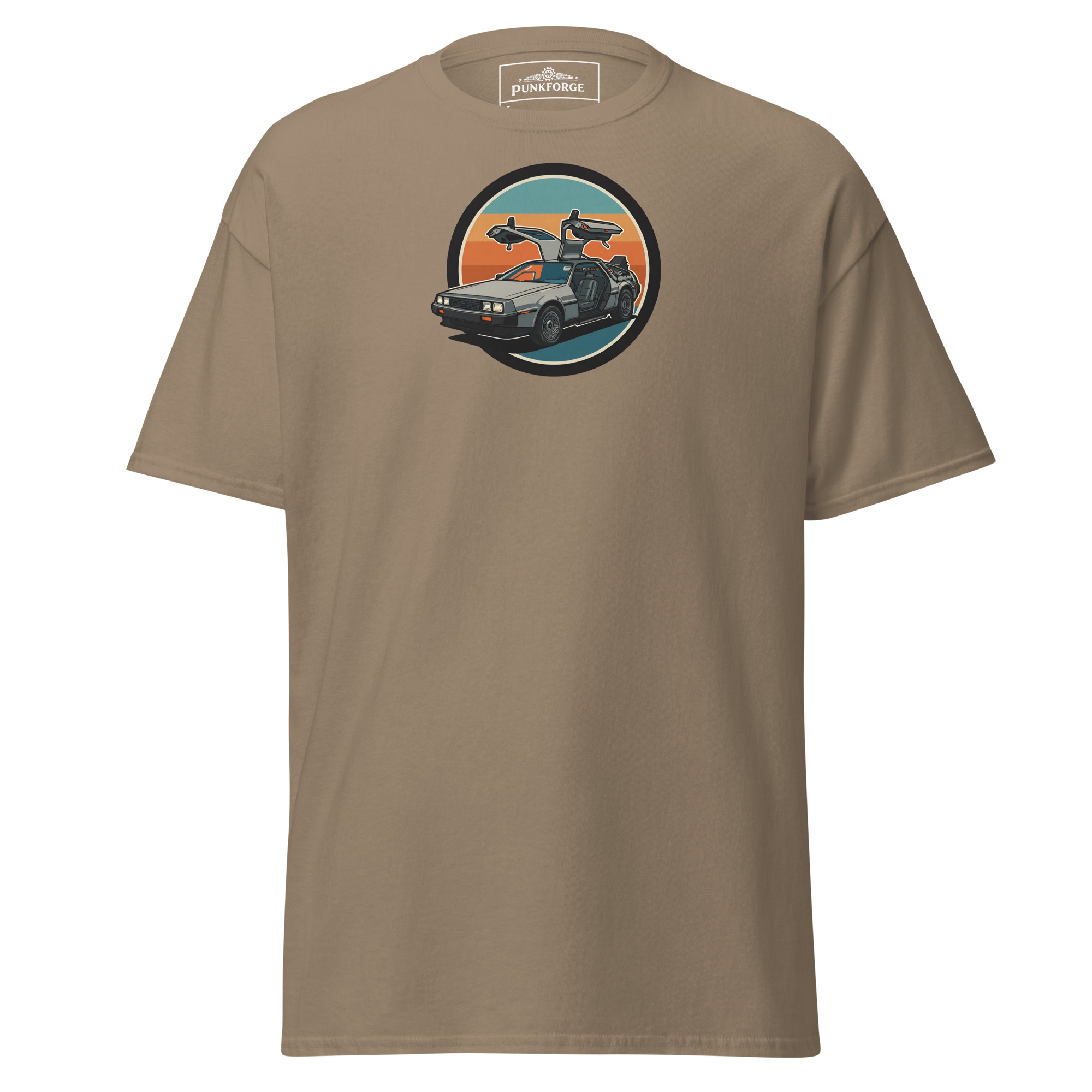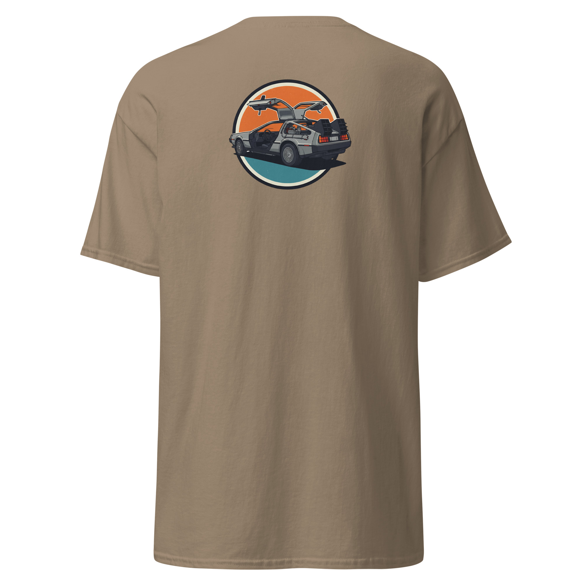 Le t-shirt classique unisexe 100 % coton vous aidera à obtenir un look plus structuré. Sa jolie coupe et ses lignes nettes sur les bords en font un vêtement facile à assortir avec les tenues streetwear superposées. De plus, il est extrêmement tendance maintenant ! Le t-shirt présente une forme classique avec des manches courtes et un col rond. Sa couleur dominante gris uni met en valeur un imprimé original représentant un véhicule aux portes en aile de mouette, posé sur un fond circulaire avec des dégradés orange et bleu. La surface en coton offre une texture lisse et agréable au toucher, parfaite pour un usage quotidien.